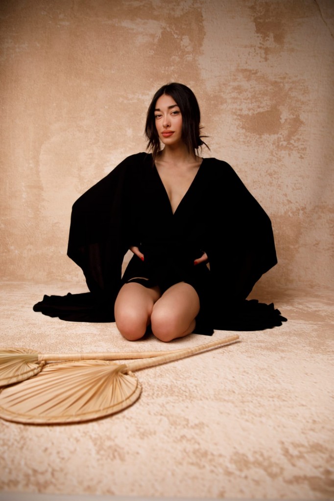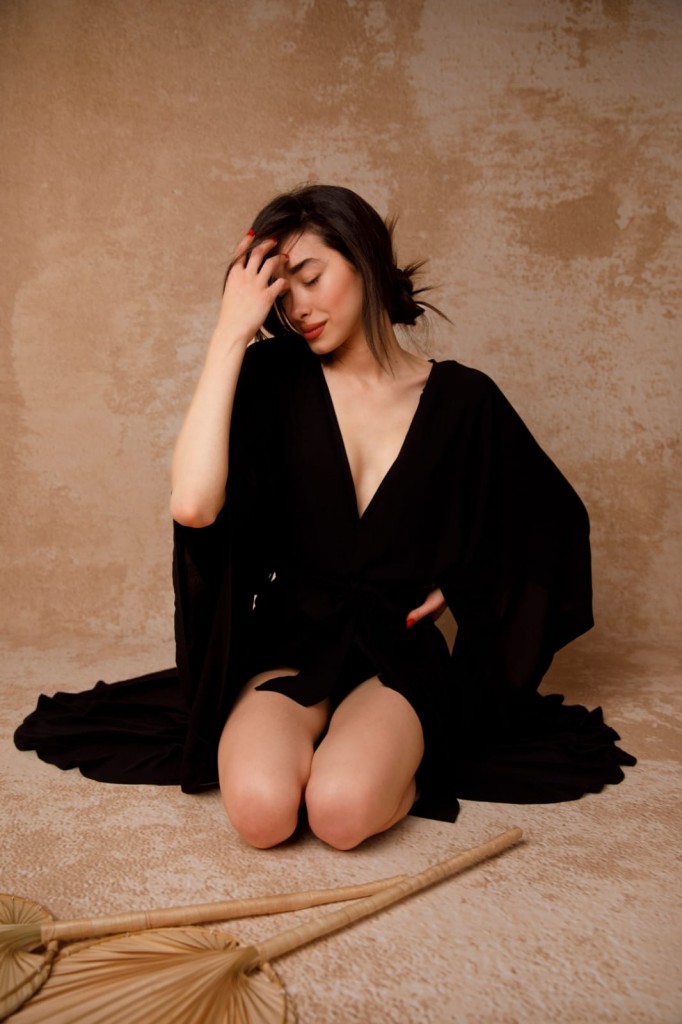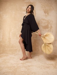 %100 krinkıl viskon kumaştan üretilmiştir. Viskon kumaşlar yapısı gereği hava geçirme özelliğine sahip olup yaz ayları için en tercih edilen kumaş türüdür.  Kimononun son derece rahat ve dökümlü bir formu vardır. Önü kısa arkası uzundur. Standart bedendir.